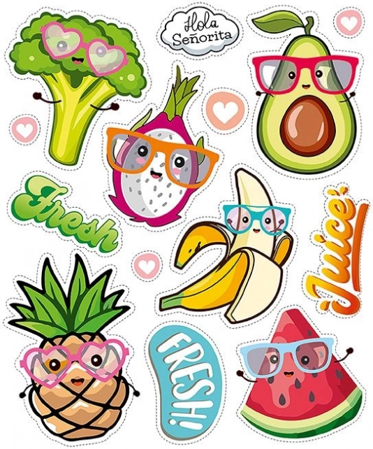 Оживете детски тениски, суичъри и чанти с весели плодови мотиви! Големият лист термотрансферни картинки с размер 20 × 30 cm е идеален за лесна и бърза украса на текстил. Мотивите са цветни, игриви и при правилно нанасяне устояват на пране до 40 °C. Чудесен избор за креативна персонализация на облекло и аксесоари.