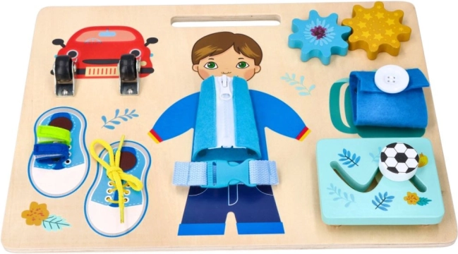 Функционалният дизайн на дъската позволява игра на маса или монтаж на стена. Компактните размери и удобният захват осигуряват, че дъската може да придружава детето навсякъде – у дома, в детската градина или по време на път.