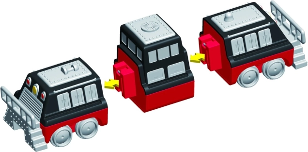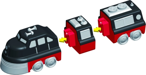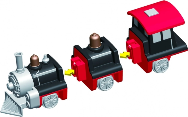 В комплекта има 9 части, от които сглобявате 3 подготвени влака. С промяна на модулите създавате десетки оригинални варианти без ограничения за фантазията.
