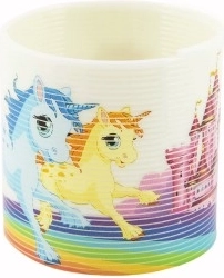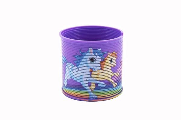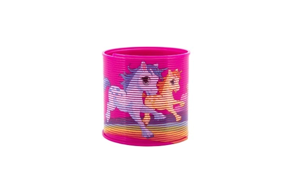 Тази цветна спираловидна пружина с сладки еднорози е класика, която никога не омръзва. Лесно се разтяга, вълнува се плавно и благодарение на качествената пластмаса е безопасна за ежедневна игра. Страхотно забавлява у дома, по време на път и на детски празненства.