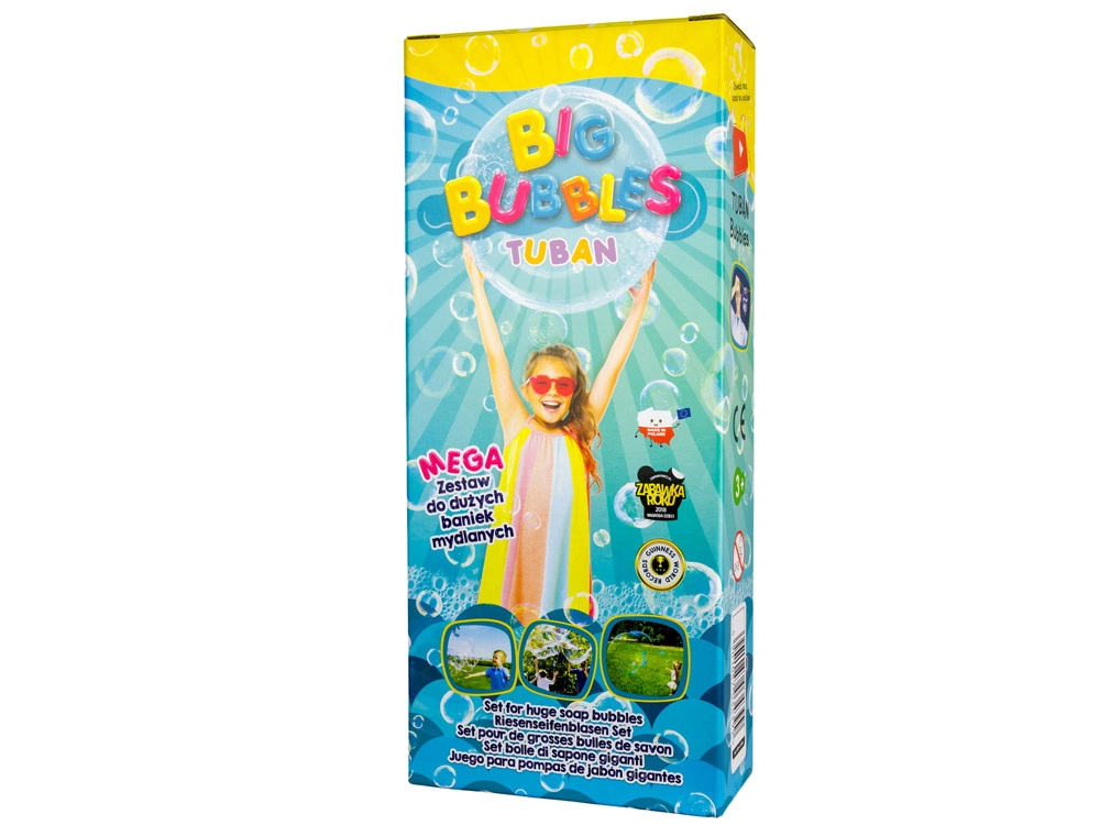 Употребата е лесна: потопете инструмента в разтвора TUBAN и с леки движения създавайте гигантски балони. Дъговите балони и тунели със сигурност ще впечатлят всеки малък откривател. Игра, пълна със смях и радост, е гарантирана.