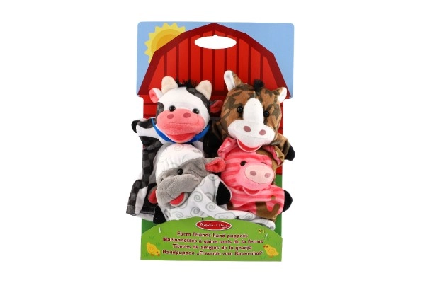 Куклите за ръка „Домашна ферма“ дават възможност за създаване на собствени приказки и истории. Този комплект включва четири различни животни от фермата, които ще обогатят всяко театрално представление. Изработени са от безопасен материал, който е мек и приятен на допир.