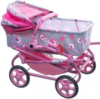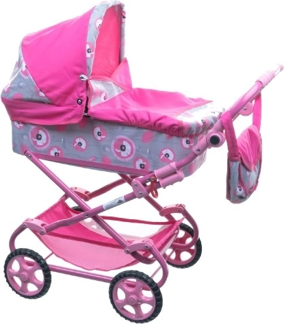 Подарете на децата си забавление с тази стилна количка за кукли. Благодарение на лекия метален корпус и по-големите колела предлага лесна маневреност и плавно возене. Количката е оборудвана с кош с покривало, кошница и практична чанта за повиване.