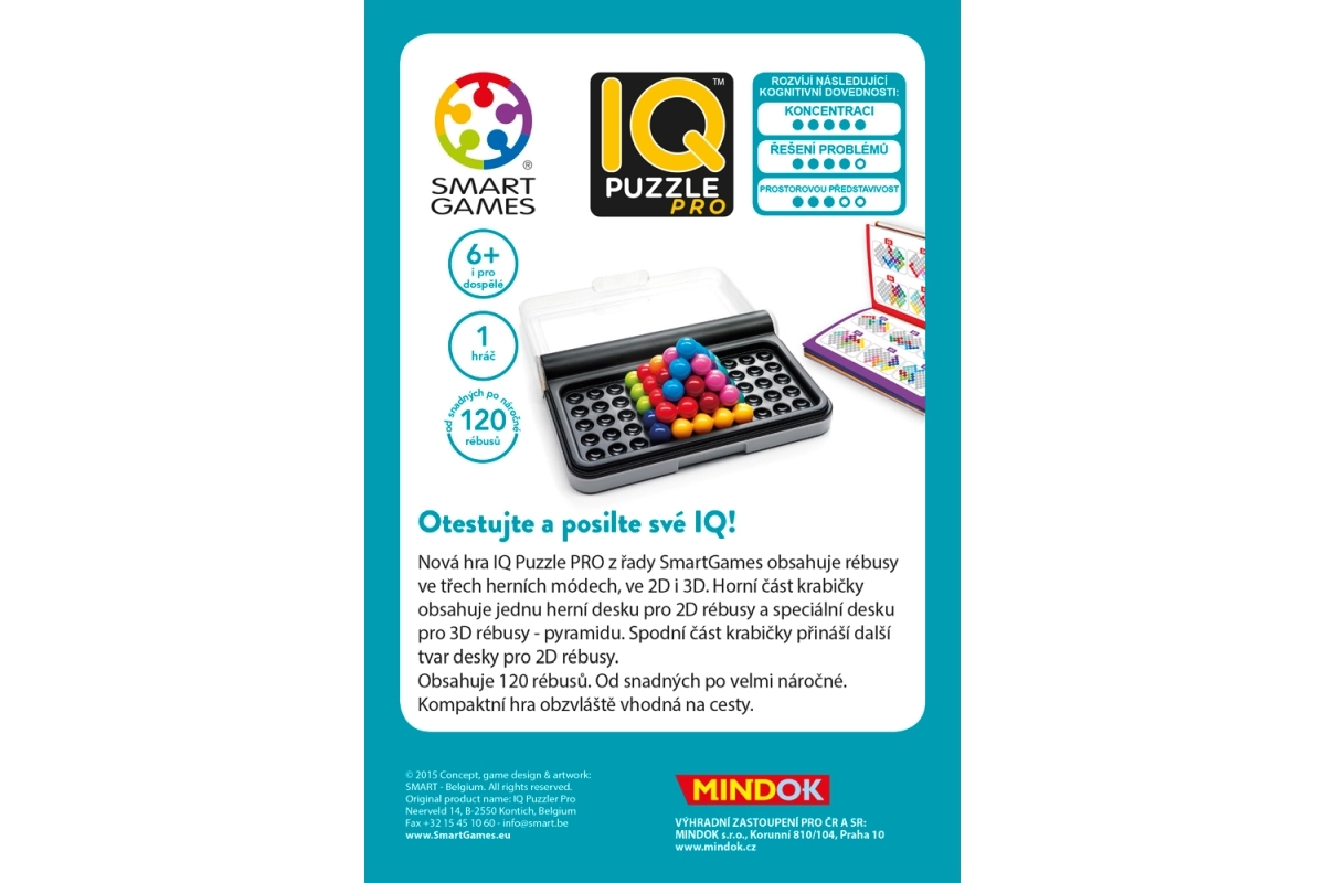 Умно забавление в джоба: SMARTGAMES IQ PUZZLER PRO предлага 120 ребуса в 2D и 3D. В компактна пътна кутийка тренира логика, пространствено мислене и планиране – идеално за един играч по всяко време и навсякъде.