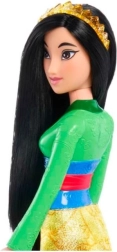 Открийте вълшебството на приказките с куклата DISNEY PRINCESS Мулан, вдъхновена от смелата героиня от едноименния филм. Куклата има шарнирни рамене и крака за лесно позиране, блестящ емблематичен костюм с лесно свалящи се обувки и тиара и дълга коса, идеална за сресване и стилизиране. Страхотен подарък за деца, които обичат да създават истории и да пресъздават любими сцени.