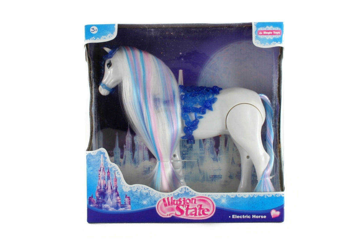 Този пластмасов ходещ кон ще зарадва всички малки любители на конете. След включване се движи сам и допълва играта с реалистични звуци на галоп и цвилене. Благодарение на компактните си размери е идеален както за детската стая, така и за пътуване.