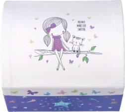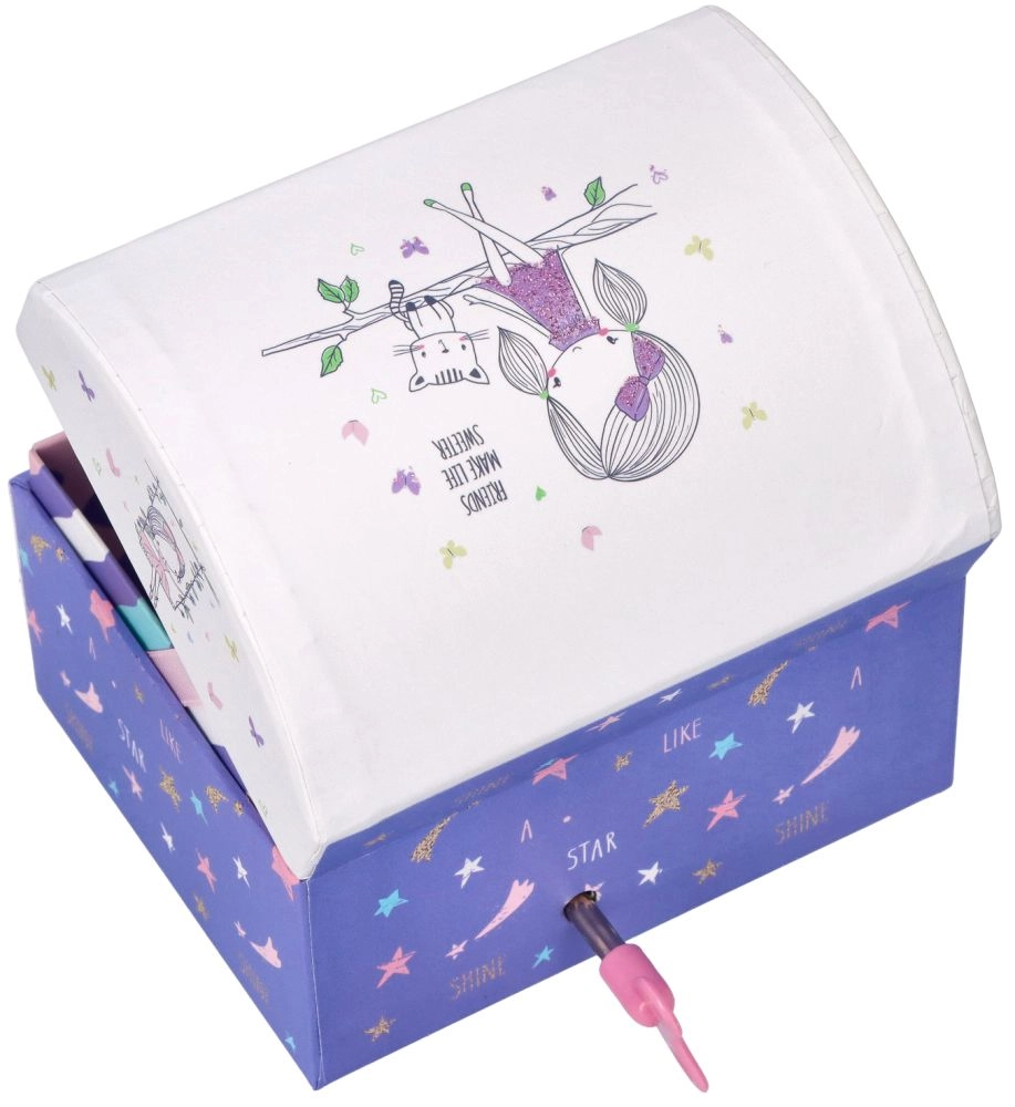 Тази музикална кутийка е украсена с мотиви на приятелство, което я прави чудесен подарък за всички, които ценят красивите взаимоотношения.