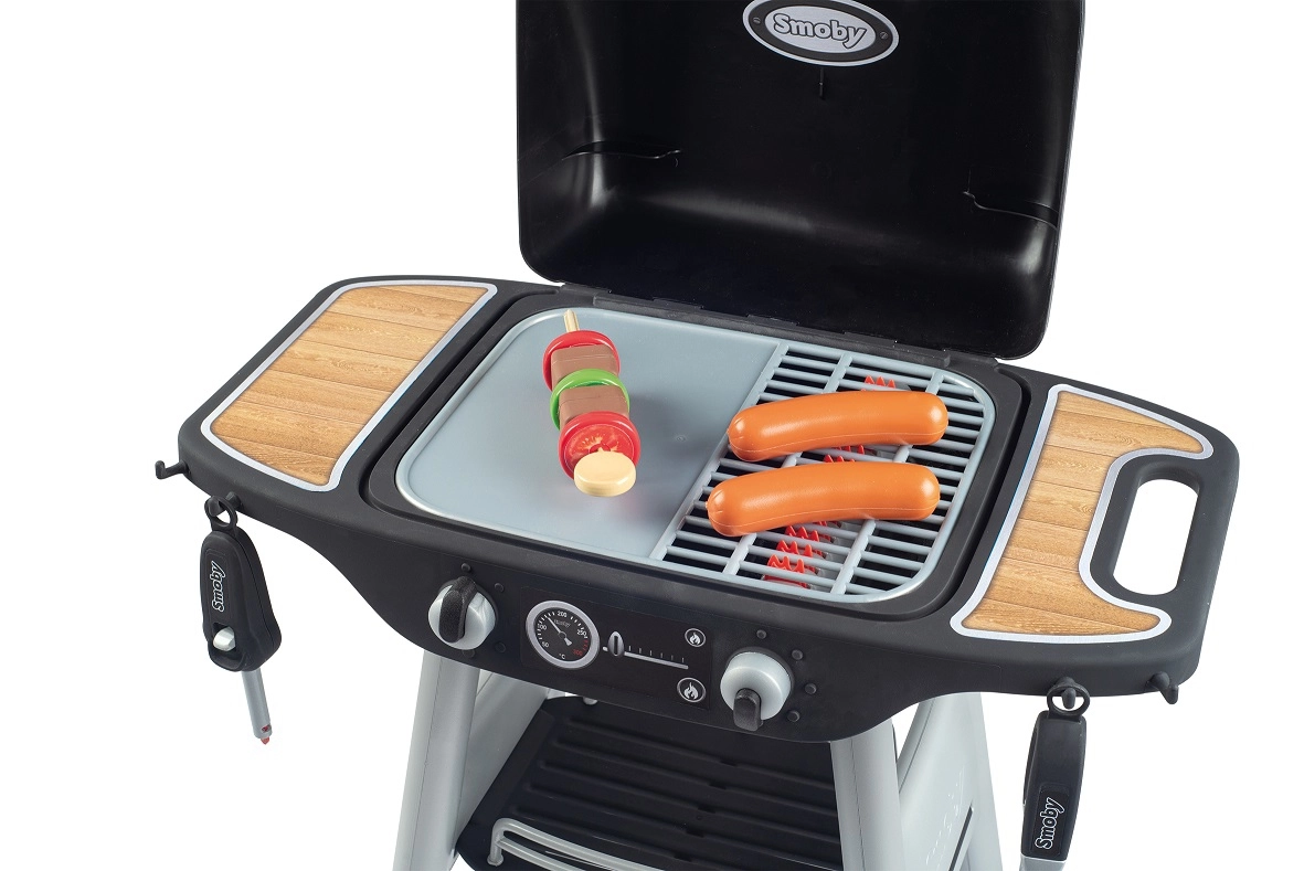 Представяме детското барбекю за игра от реномираната марка Smoby, което носи радост и забавление на всички малки любители на готвенето. Този грил е оборудван с 18 автентични аксесоара, сред които хамбургер, шиш, щипки за грил, запалка със звук и мелничка за сол и пипер. С това оборудване децата могат да изпитат истинско усещане за барбекю.