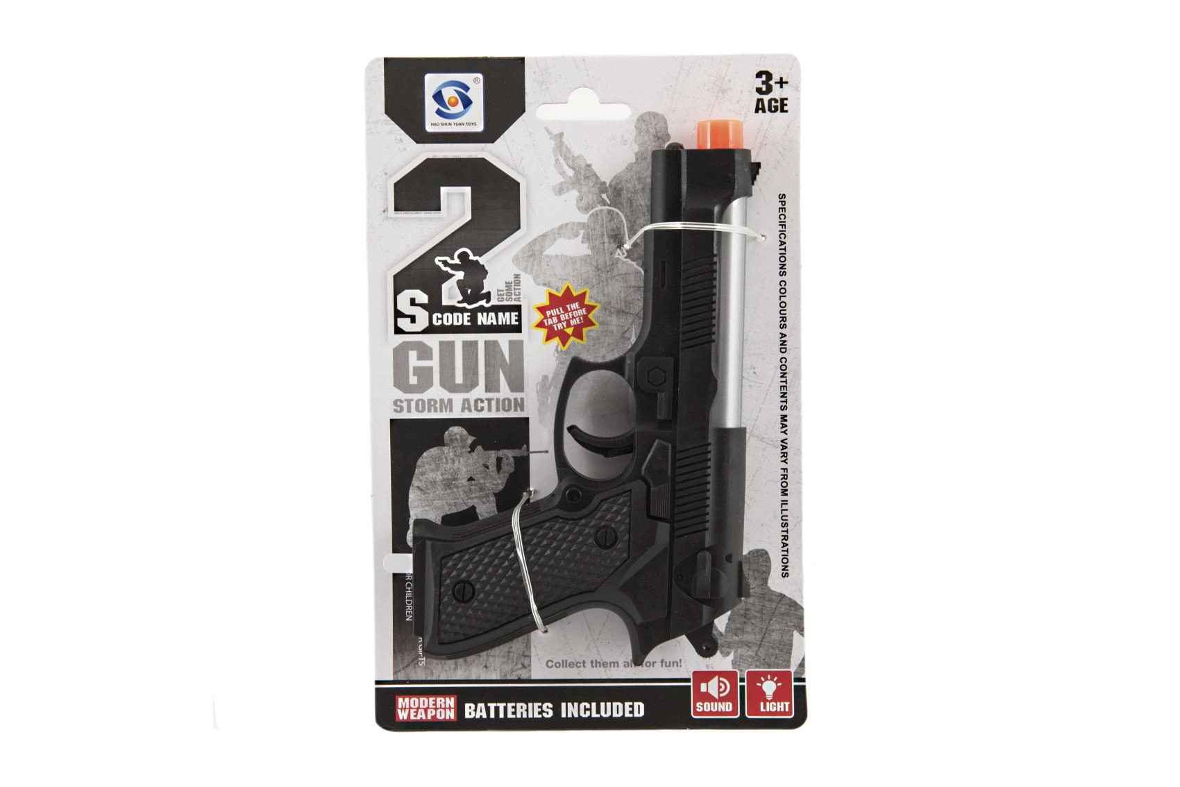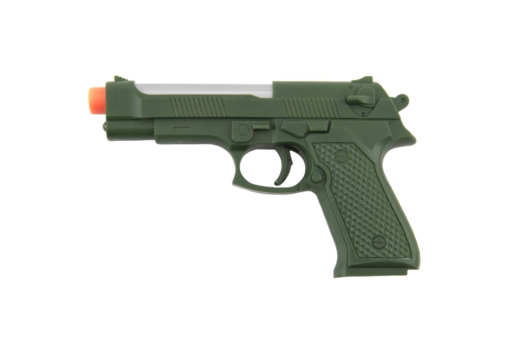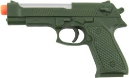 Този реалистично изглеждащ пластмасов пистолет ще зарадва всички малки фенове на екшън игрите. Благодарение на светлинните и звукови ефекти носи още повече забавление и подкрепя фантазията и творческата игра. В комплекта ще намерите всичко необходимо – 2× AG10 батерии вече са включени.