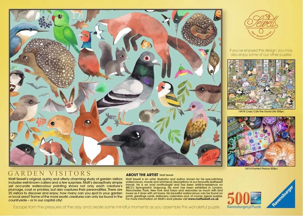 Пъзел 500 части с име Обитатели на градините предлага уникални и фини шарки, които се подреждат лесно и създават красив образ. Идеален за тренировка на ума и релаксация.