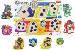 Открийте първия пъзел за най-малките с мотив PAW Patrol. Здравите дървени елементи с практични дръжки се държат удобно, а подложката с фрезовани форми и черно-бял шаблон интуитивно насочва към правилното място. Така децата тренират фината моторика, координацията око–ръка и разпознаването на форми.