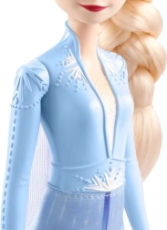 Открийте вълшебната кукла Елза, вдъхновена от филма Disney Frozen. Тя носи своя емблематичен син тоалет с плащ, сваляща се пола и детайлни обувчици. Дългата руса плитка и възможността за позиранe правят тази кукла идеален избор както за игра, така и за колекциониране.