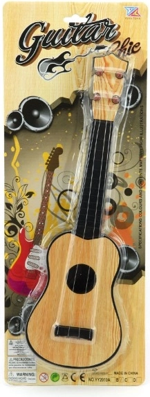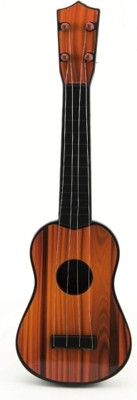 Детска пластмасова китара с дължина 40 см е идеалният първи музикален инструмент за малки музиканти. Помага за развиване на фината моторика, координацията на движенията и усета за ритъм. Предлага се в две цветови изпълнения, имитиращи светло или тъмно дърво. Подходяща от 3 години.