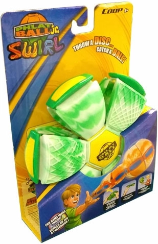 Phlat Ball Junior Swirl е иновативна играчка, която осигурява двойно забавление. Неговата способност да променя формата си от диск в топка добавя изцяло ново измерение към традиционните игри на открито. С пъстър дизайн, който се предлага в четири нови шарки, предлага безброй начини за забавление.
