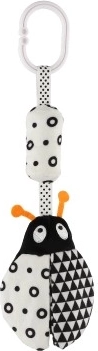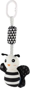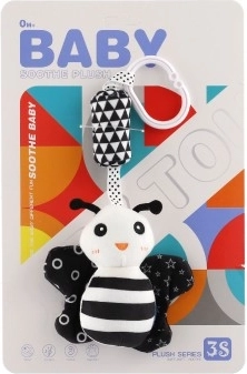 Тази черно-бяла висяща плюшена играчка е създадена за бебета от 0 месеца. Високият цветови контраст естествено привлича погледа на детето, подпомага концентрацията и първите визуални умения. Меките материали и нежните звукови стимули носят безопасни и успокояващи сетивни изживявания.