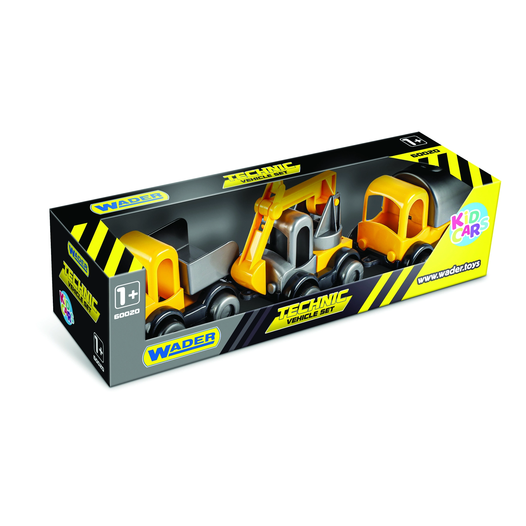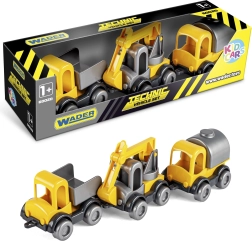 Открийте забавния комплект от три строителни колички KID CARS на марката WADER, идеален за най-малките от 12 месеца. Сетът съдържа самосвал, кран и цистерна, които подпомагат развитието на въображението и креативността. Здравата пластмасова изработка и компактният размер 10 см са перфектни за малките детски ръчички.