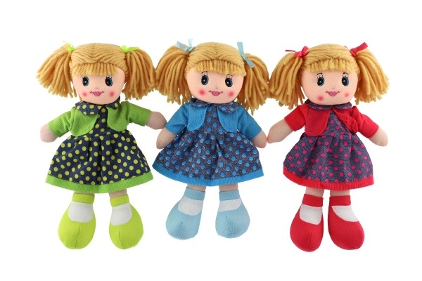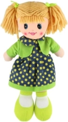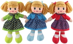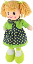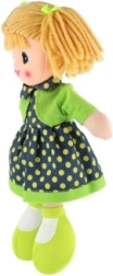 Очарователна парцалена кукла с височина 30 см, много мека, приятна на допир и идеална като приятелка за леглото. Помага на децата да се чувстват сигурни през нощта и да заспиват по-лесно. Предлага се в различни цветови варианти на рокличките; десенът може да се различава.