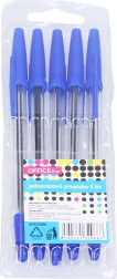 Практичният комплект съдържа 5 броя еднократни химикалки с синьо мастило, идеални за училище, офис и ежедневна употреба. Леки и удобни за писане, надеждни за бързи бележки и по-дълги текстове.