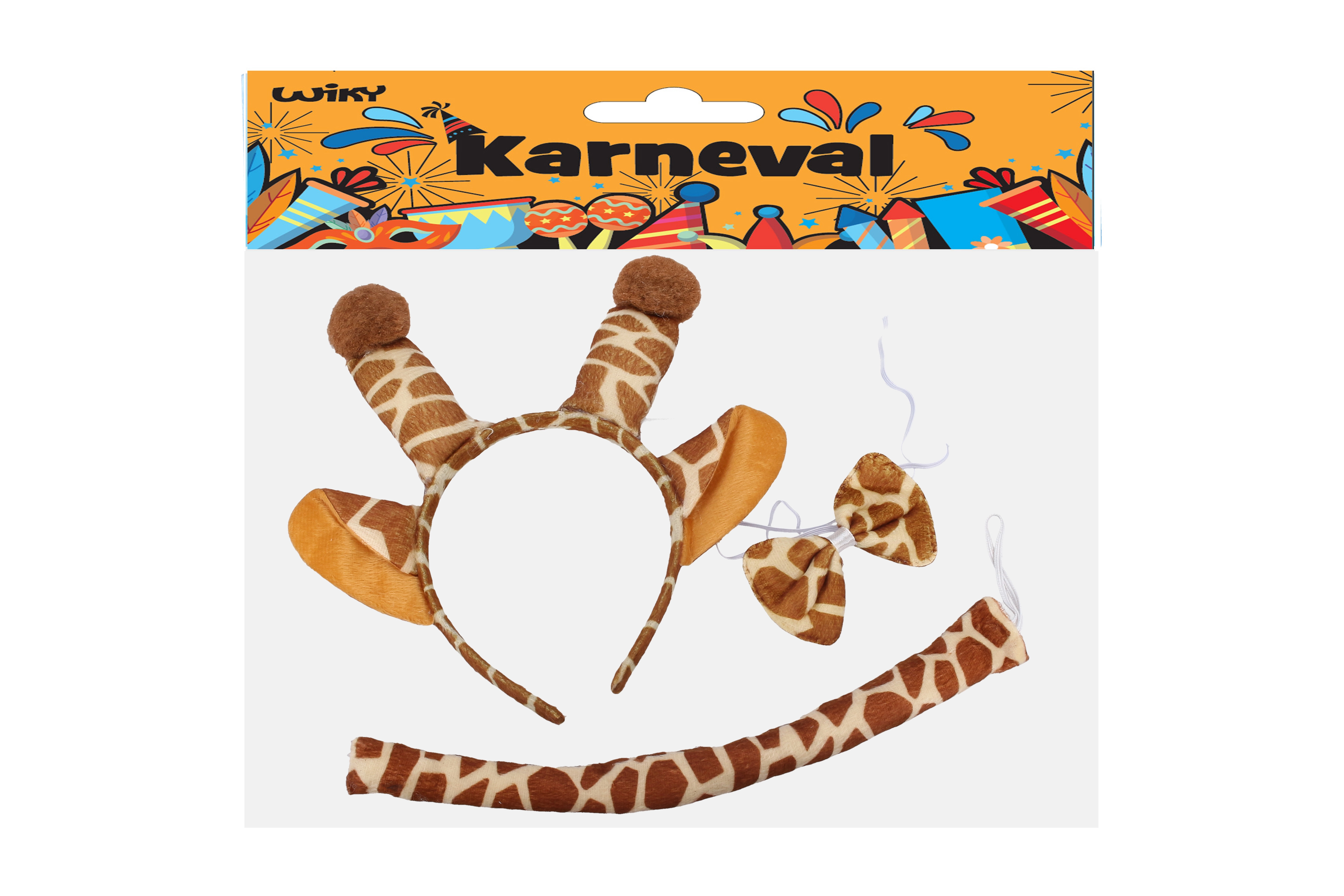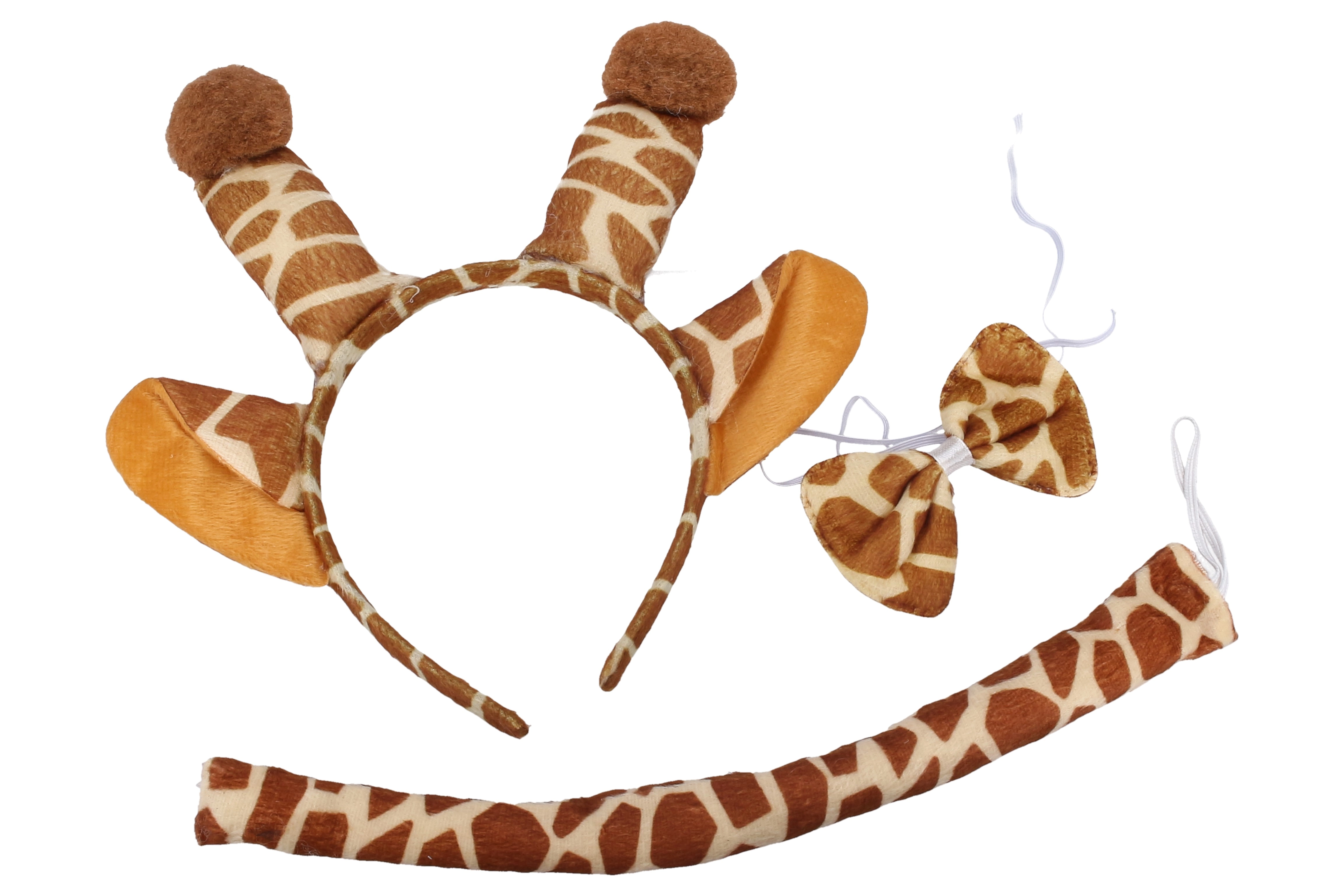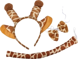 Търсите бърза и ефектна карнавална промяна? С този сет на тема жирафа получавате всичко необходимо в едно. Диадемата с ушички, папийонката около врата и опашката създават игрив вид, който прави впечатление от пръв поглед. Аксесоарът е чудесен за деца и възрастни и подхожда на рокли, тениски и гащеризони.