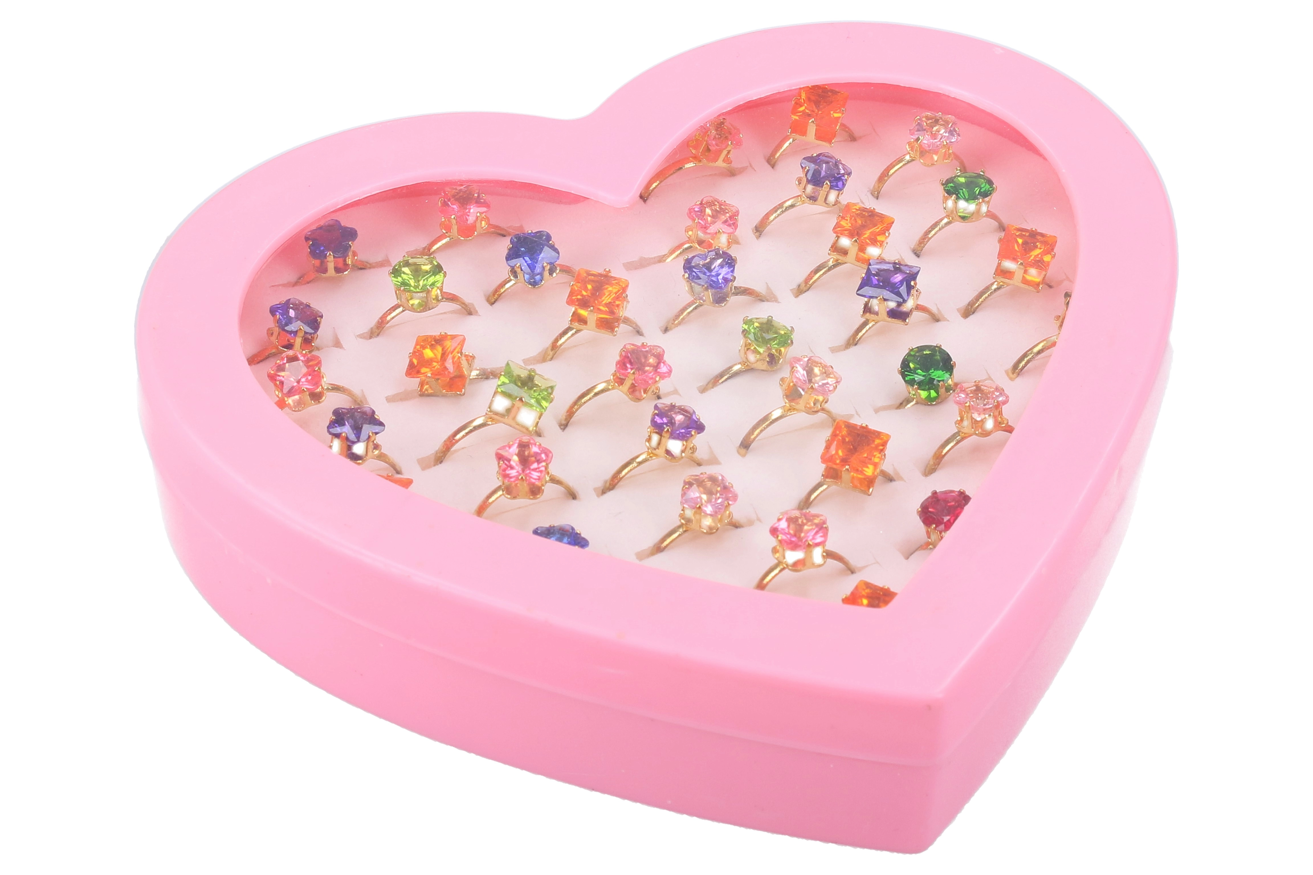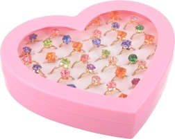 С този чудесен комплект от 36 пръстена с цветни камъчета всяко дете може да избере своя любим. Всеки пръстен е регулируем, което позволява лесно напасване към размера на пръста. Те са страхотен подарък за всички малки принцеси, които искат да са стилни всеки ден.
