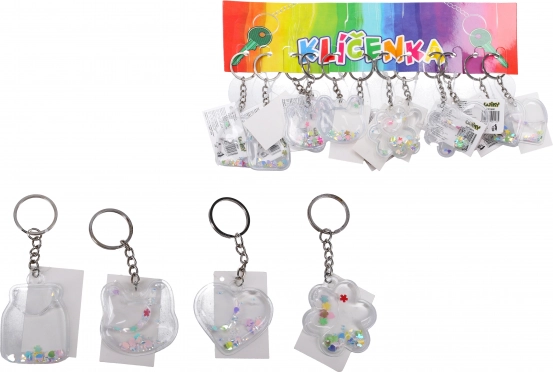 Стилен акрилен ключодържател с течност и блестящ брокат, който омагьосва при всяко движение. Идеален като подарък или аксесоар за ключове, раница или чанта. Изберете от микс от игриви мотиви, насладете се на ефекта на движещите се брокатени частици и лекия, издръжлив материал за ежедневна употреба.