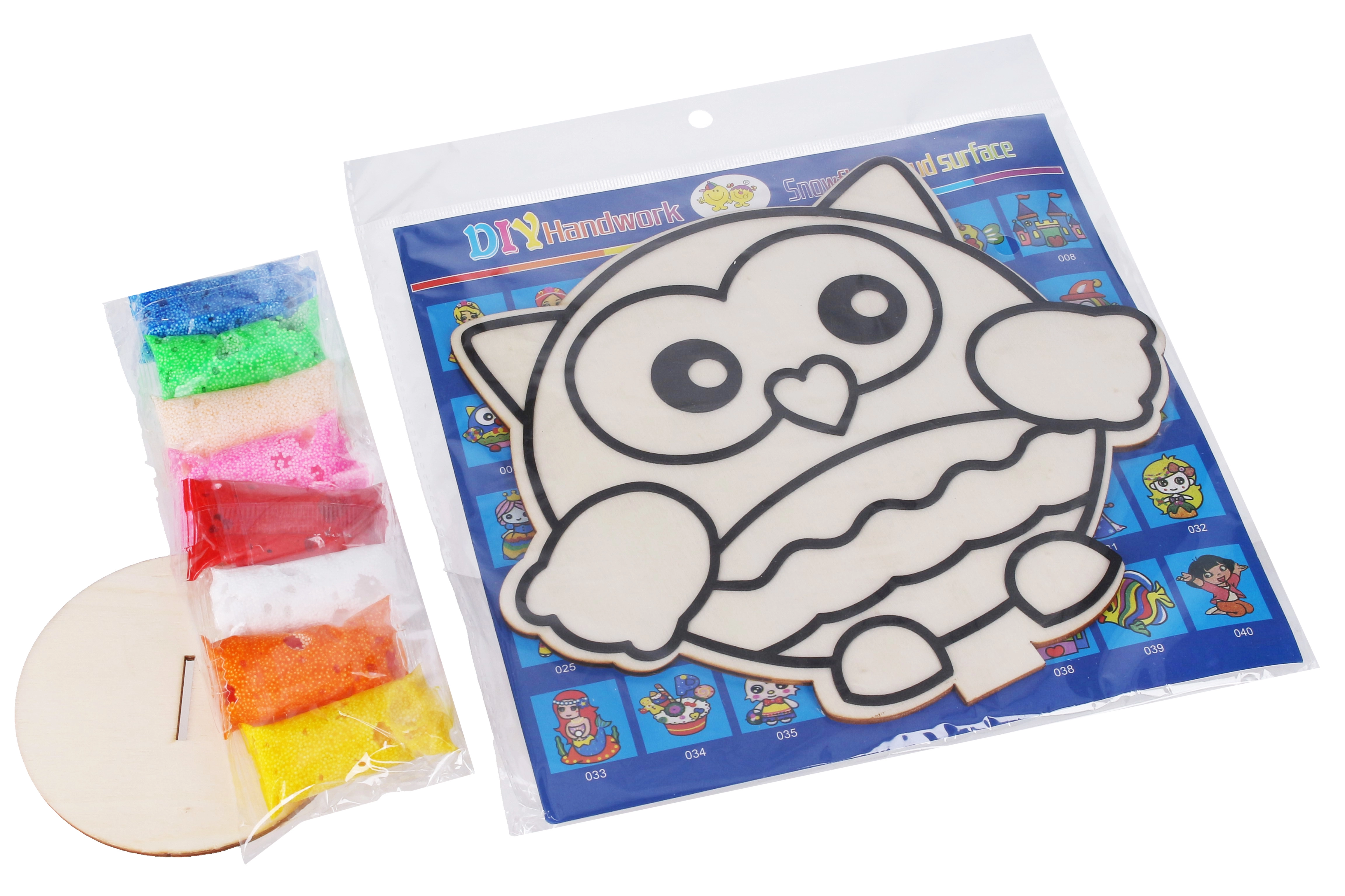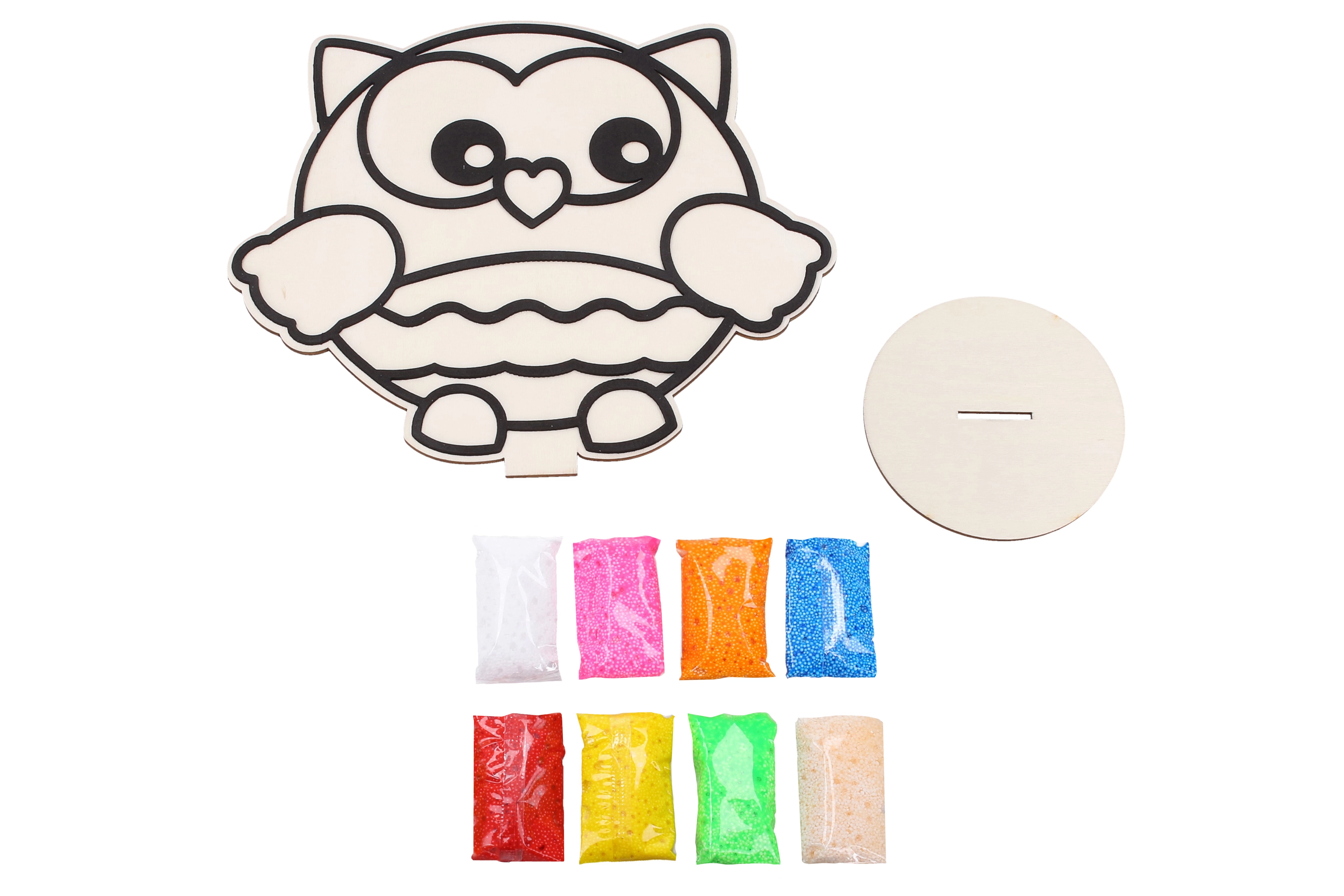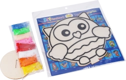 Този креативен комплект предоставя всичко необходимо на децата, за да създадат оригинална 3D картинка. Дървената шаблон-плочка с отчетливи контури лесно се поставя в поставката, а с помощта на топчестата пластилинова маса в 8 наситени цвята се запълват отделните зони. Резултатът е стабилна декорация, която озарява детската стая.