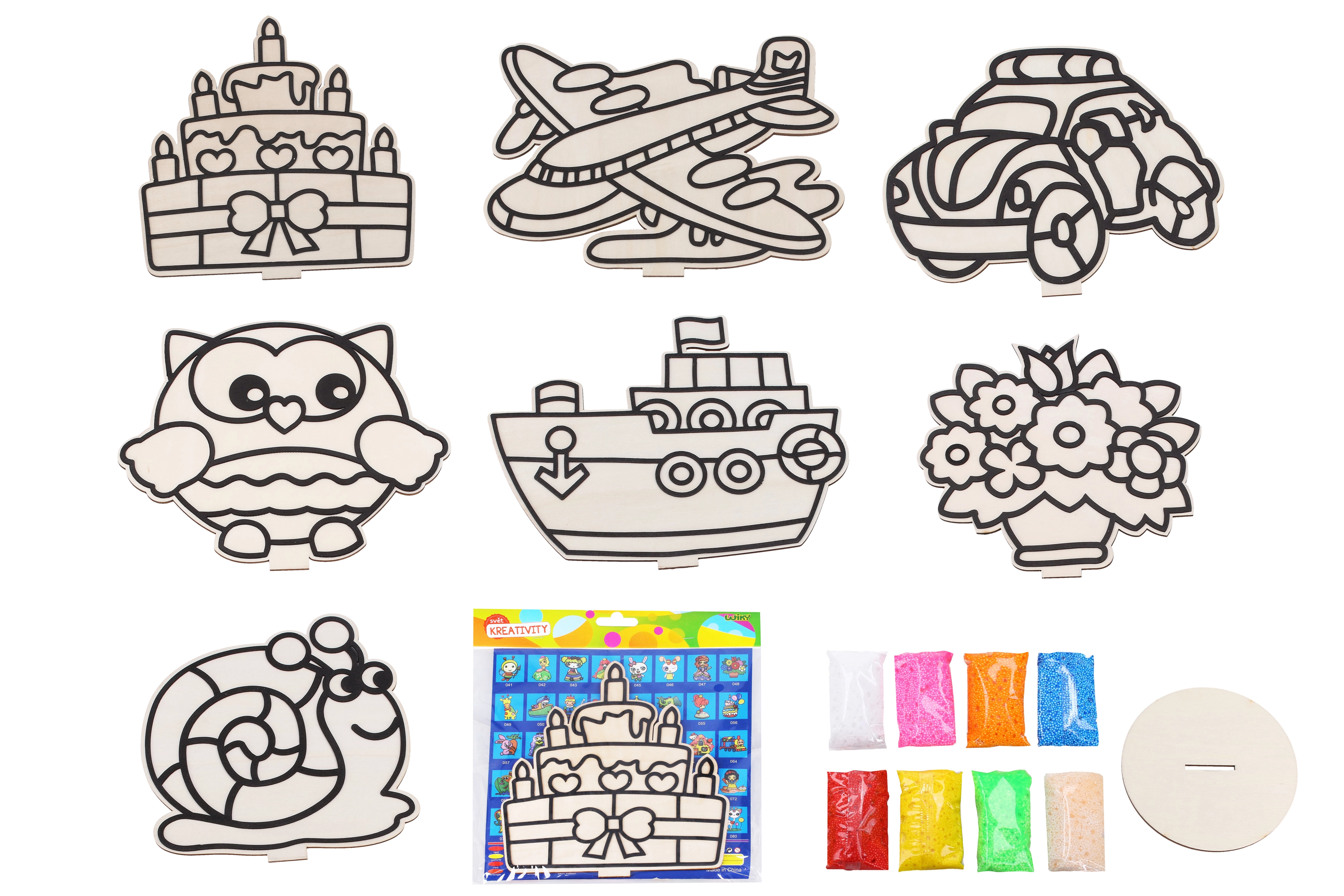 Дървената картинка с ясно изразени контури улеснява запълването и води децата стъпка по стъпка към красив резултат. Идеална за първи творчески проекти.
