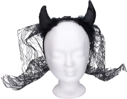 Добавете адски чар към превъплъщението си с черните дяволски рога с воал. Практичната диадема осигурява удобна и сигурна фиксация в косата, а елегантният воал придава загадъчен и изразителен ефект. Страхотен избор за карнавал, Хелоуин, фирмени партита и училищни събития.