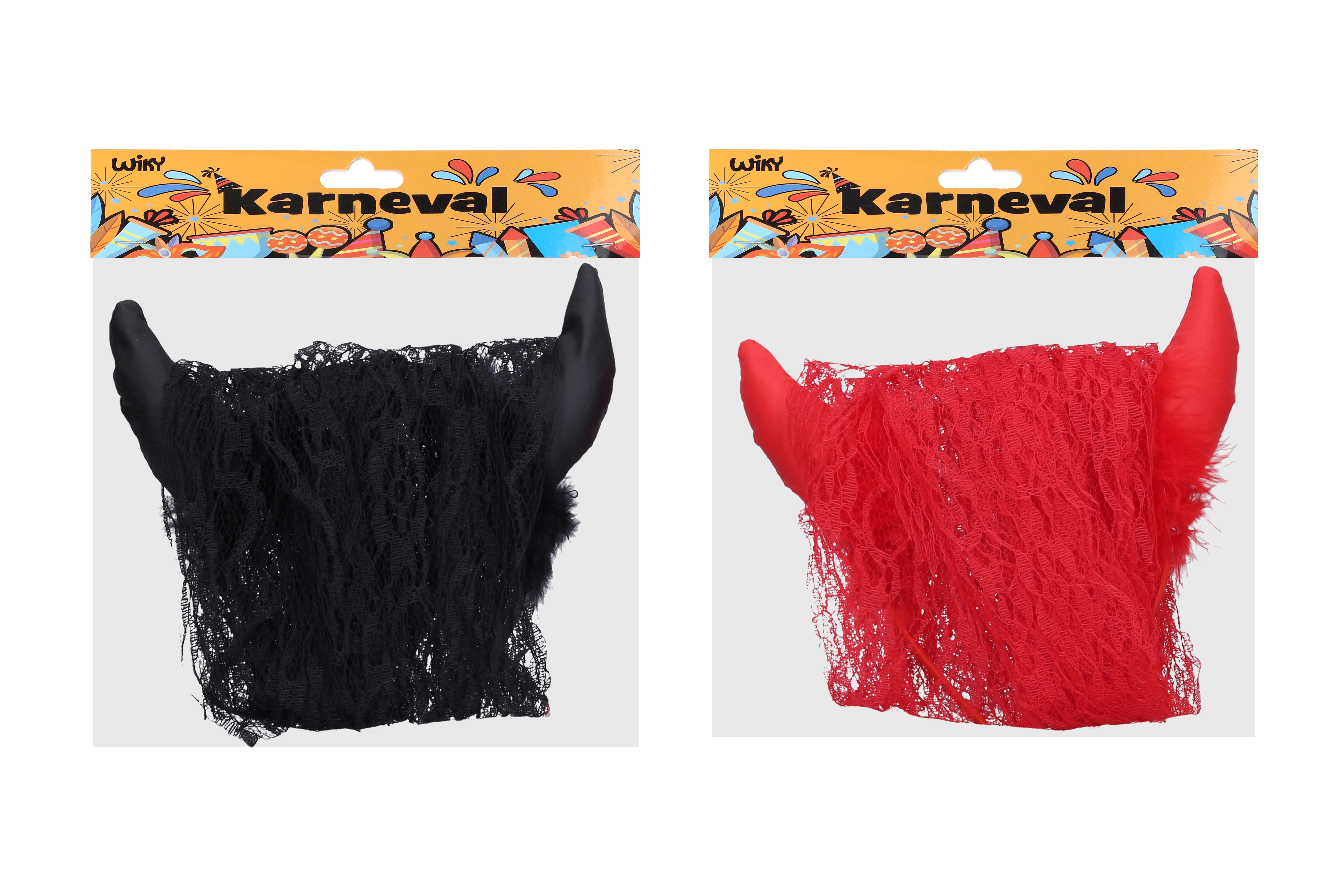 Стилни черни дяволски рога с воал на удобна диадема, които допълват всеки карнавален костюм. Идеални за възрастни и тийнейджъри за маскаради, партита и тематични събития. Лека конструкция, лесно поставяне и ефектен воал за впечатляваща визия без усилие.