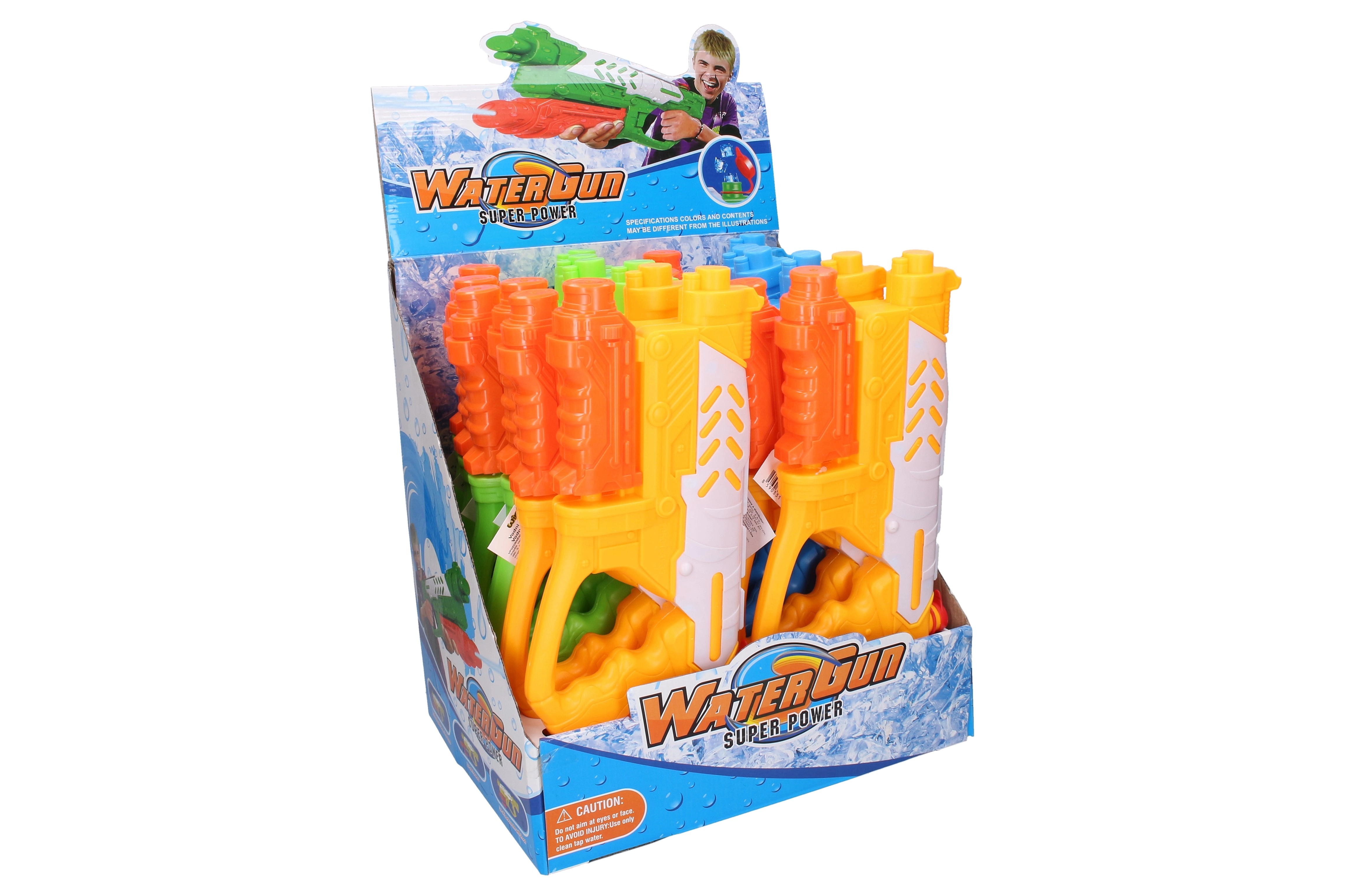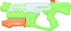 Насладете се на освежаващо забавление с тази помпова водна пушка с дължина 34 см. Благодарение на лесния помпов механизъм изстрелва мощна струя вода и е идеална за летни игри край вода. Предлага се в 3 ярки цвята – син, зелен и жълт.
