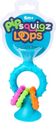 PipSquigz Loops е умно съчетание на гризалка и дрънкалка, което привлича с цветове, форми и звуци. Мекият силиконов накрайник за гризане нежно масажира венците, докато трите подвижни пръстена приятно дрънчат и насърчават изследването. Играчката е проектирана да подпомага сензорното развитие и координацията ръка–око.