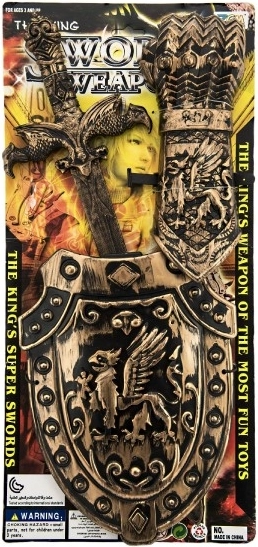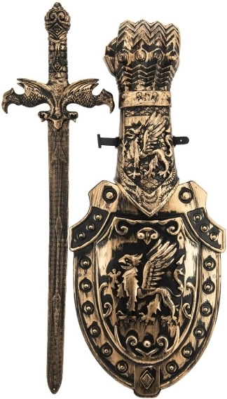 Станете горд рицар с този пластмасов меч със щит, който отлично допълва вашето снаряжение. С дължина 48 см е идеален за всяка детска битка и е безопасен за игра.