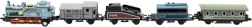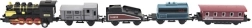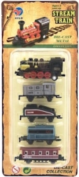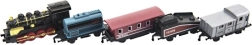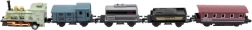 Комплектът влакчета с локомотив и четири вагона ще зарадва всеки любител на железницата. Благодарение на металната и пластмасовата изработка моделите изглеждат реалистично и в същото време издържат на ентусиазираната детска игра. Всеки елемент е с компактна дължина 8 cm, така че лесно пасва в ръката и на домашно трасе.