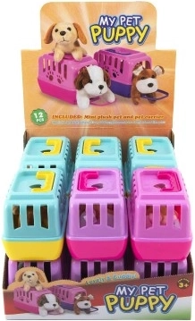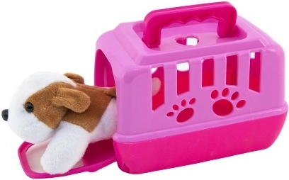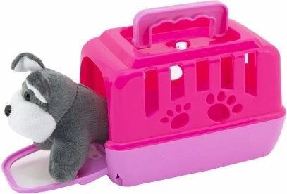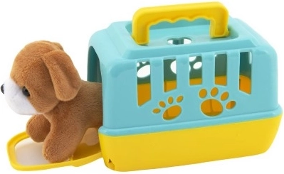 Този комплект комбинира меко плюшено кученце и лека пластмасова кутия с вентилационни отвори и дръжка за лесно пренасяне. Децата могат да играят на грижа за животинче, да го возят на излети и да го слагат да спи – всичко това по забавен и безопасен начин.