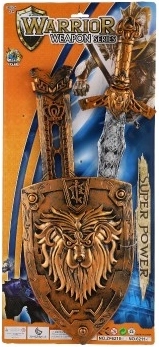 Този рицарски комплект ще зарадва всички деца, които обичат екшън и фантастични игри. Мечът с дължина 55 см ляга отлично в детската ръка, пластмасовата изработка е безопасна и лека, а калъфът осигурява удобно носене. Щитът с изразен релеф на лъв придава благородна визия на цялата екипировка.