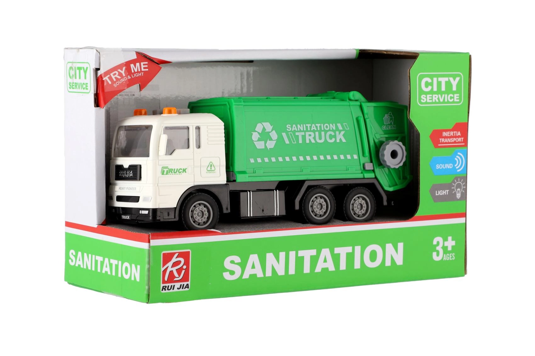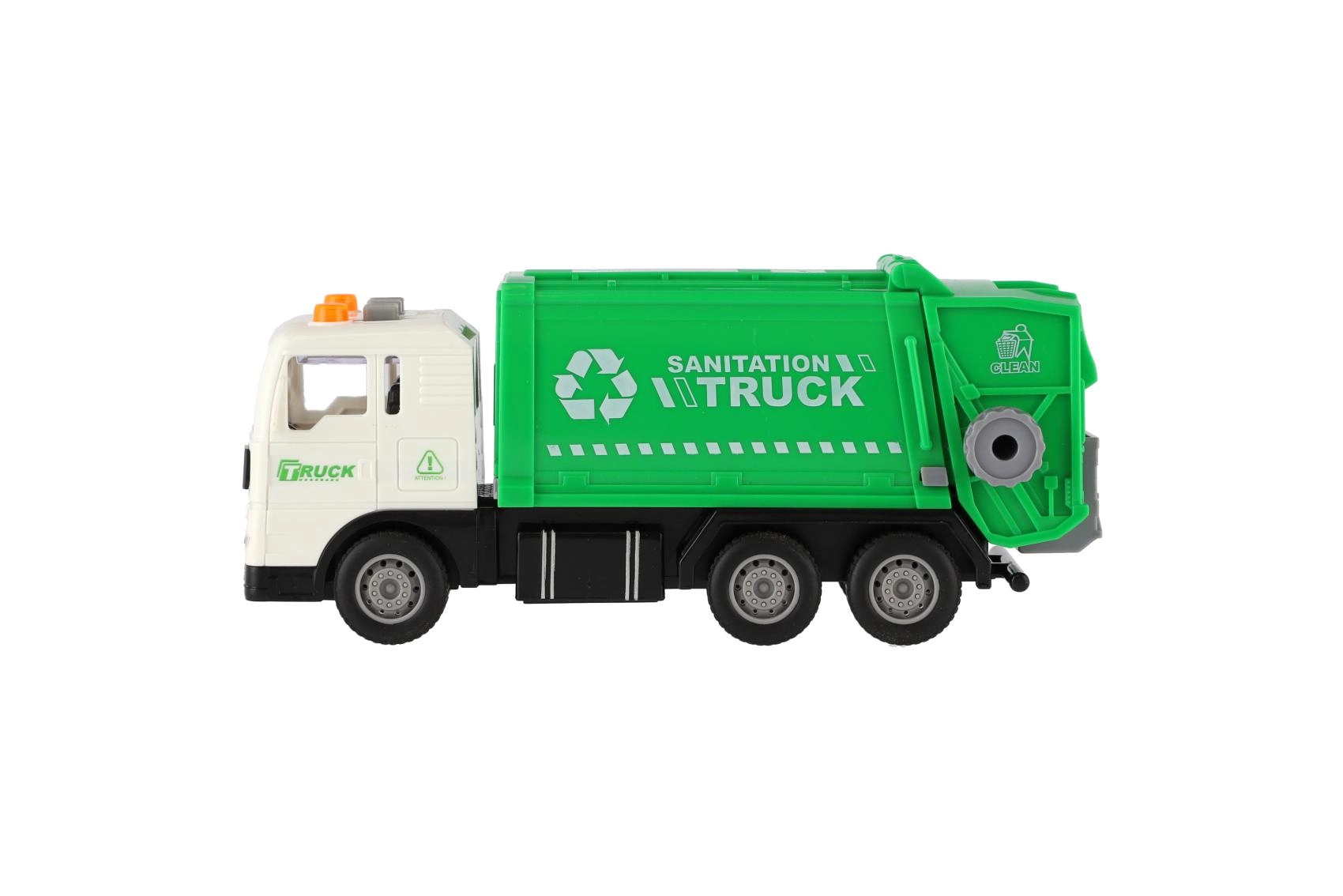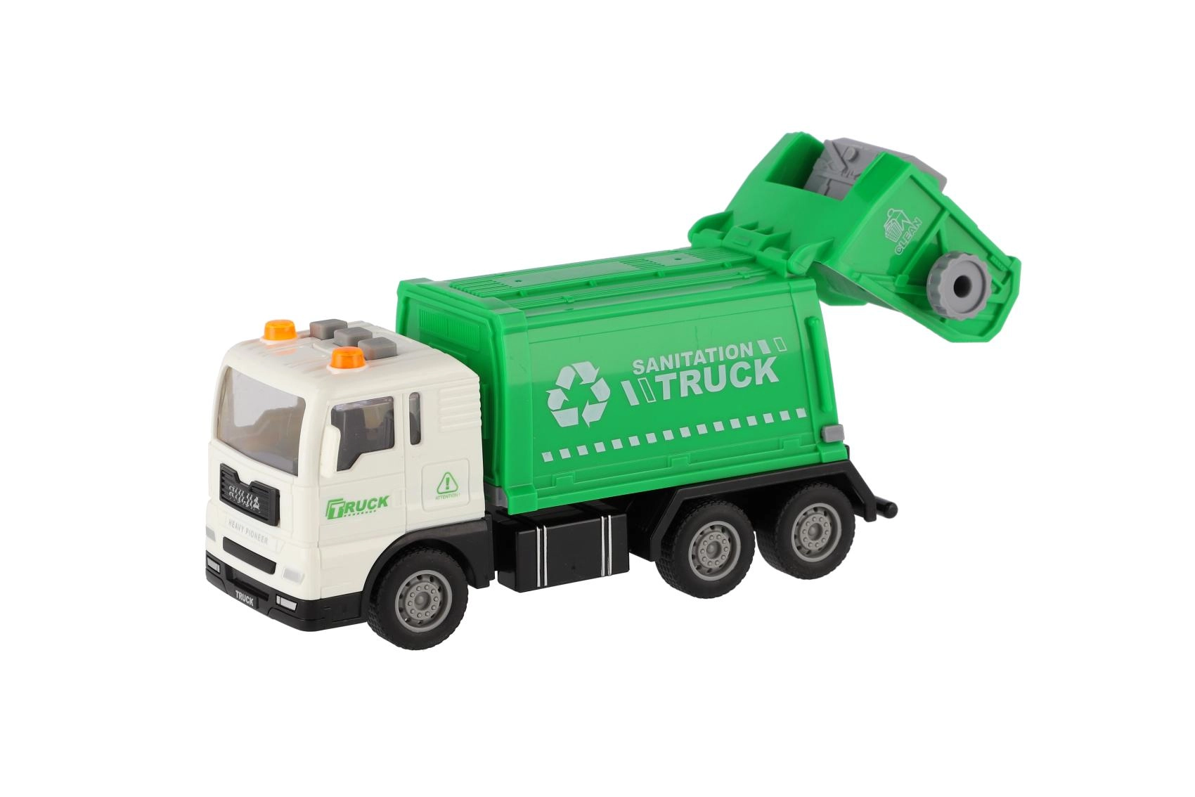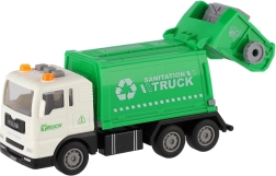 Стилен боклукчийски камион за малки шофьори носи реалистично забавление благодарение на инерционно задвижване, светлинни маяци и звукови ефекти. В мащаб 1:32 предлага отварящ се и накланящ се контейнер, така че децата могат да преживеят истинската работа на сметосъбирачите. Батериите AG13 са включени в комплекта, така че играта може да започне веднага.