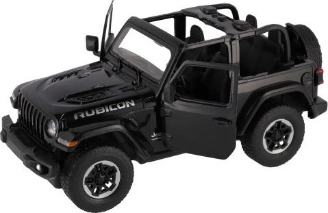 RC моделът Jeep Wrangler Rubicon от марката Rastar ще зарадва малки и големи почитатели на офроуд автомобилите. Черното изпълнение с червено арматурно табло, реалистичните детайли на интериора и екстериора и функционалните отваряеми врати придават автентичен вид и усещане при шофиране.