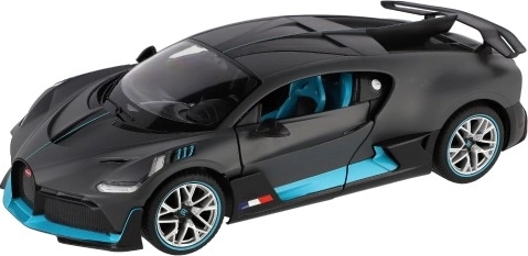 Детайлна каросерия в сиво-синя гама и функционални врати придават на модела BUGATTI Divo автентичен вид както за изложение, така и за каране.