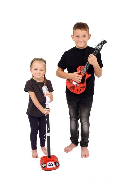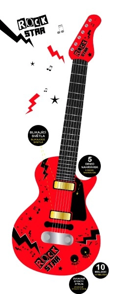 Електрическата китара ROCK STAR е чудесен инструмент за развитие на музикалните способности на вашето дете. Дълга е 58 см и предлага много допълнителни функции за още повече забавление: