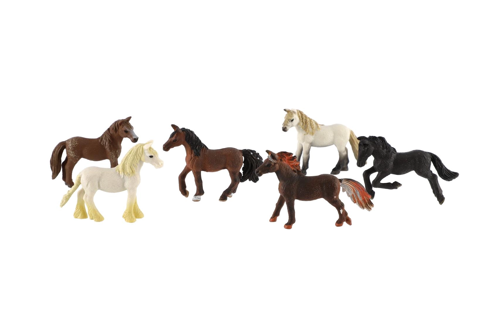 Комплектът съдържа шест различни фигурки с детайлна изработка на грива, опашка и стойка – идеални за колекциониране и игра на ферма.