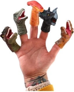 Комплект кукли за пръсти на тема динозаври, идеален за малки изследователи. Съдържа 5 гумени кукли за пръсти, които осигуряват безкрайни часове забавление и творческа игра.