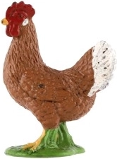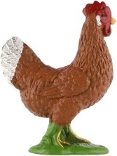 Вярно моделирани пера, естествено кафяво оцветяване с бяла опашка и червен гребен придават на фигурката автентичен вид на истинска кокошка.
