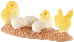 Декорирайте дома си с този красив пластмасов декоративен елемент, изобразяващ жълти пиленца и бели яйца върху кафява основа. Този очарователен аксесоар ще внесе свежест и магията на пролетта или Великден във вашия дом.