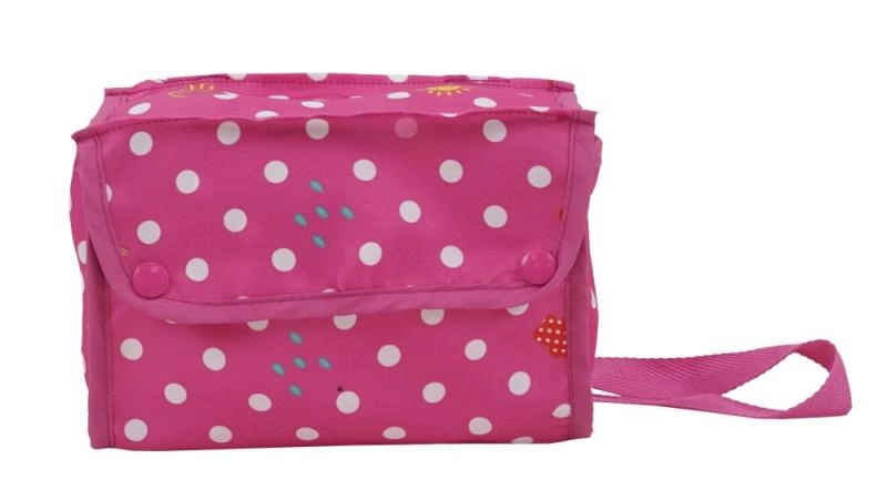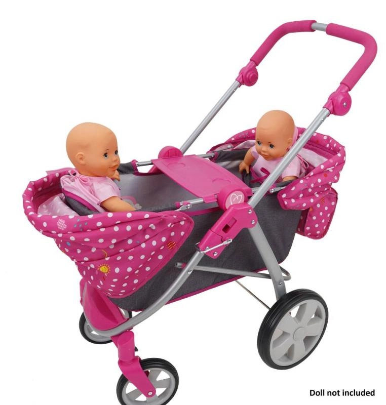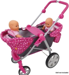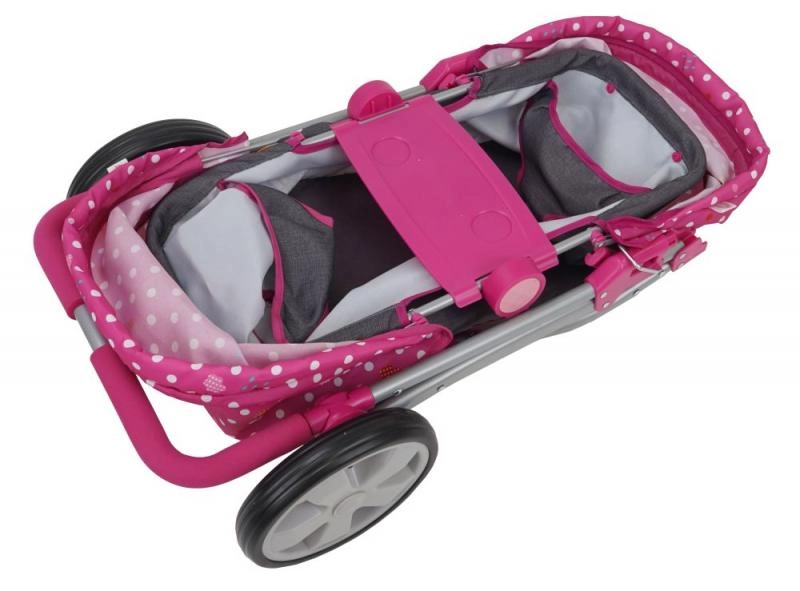 Красива количка за кукли с очарователен на точки десен и регулируема дръжка за удобството на вашите деца. Идеална за малки госпожици от 3 години за кукли до 53 см.