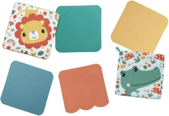 Комплектът от цветни платове с игриви мотиви насърчава дърпане и мачкане, което развива фината моторика и тактилните усещания.