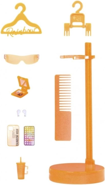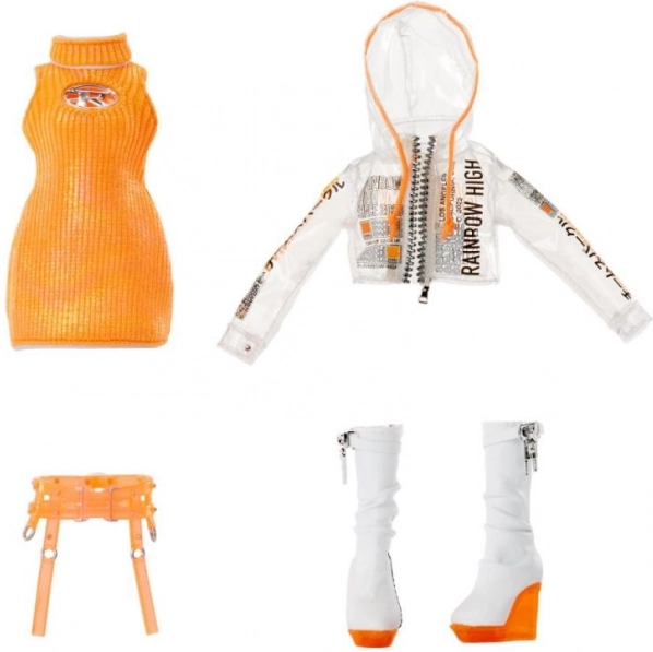 Куклата е подходяща както за имагинативна игра, така и като модел на модни подиуми. Предизвикателната оранжева визия и уникалният тоалет носят естетическо изживяване и подкрепят креативната игра на децата. Влезте в света на Rainbow High и оставете фантазията си да полети високо!