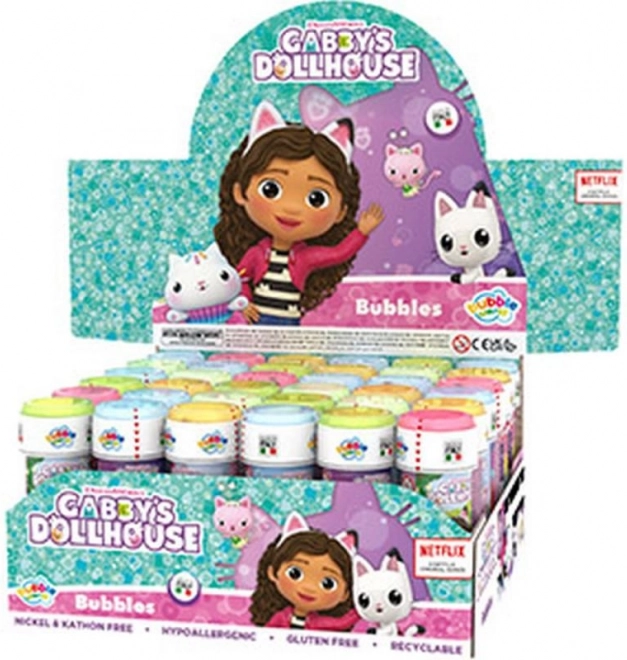 Развеселете детския ден с бълбука GABBY’S DOLLHOUSE. Практичната бутилка с обем 60 ml се държи удобно и благодарение на вградената духалка децата веднага започват да правят много блестящи балончета. Цветната капачка съдържа и вградена мини игра, която забавлява и по време на път.