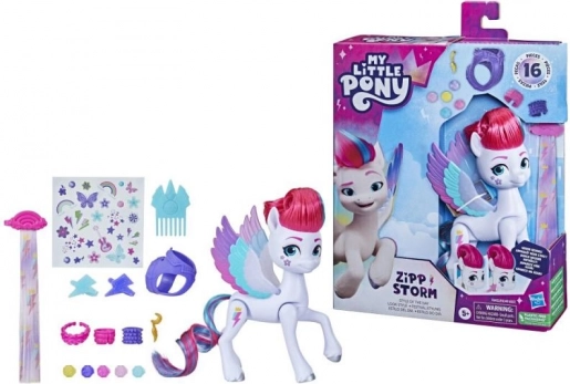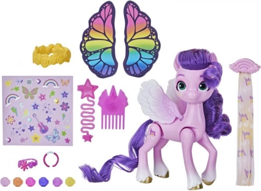 Включва повече от 15 тематични аксесоара: носими модни елементи, вдъхновени от фестивали, удължения за коса с коренчета, гребен и инструменти за стайлинг и стикери за още повече забавление. Идеално за фенове на My Little Pony, които обичат креативната игра и разказването на истории.