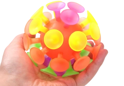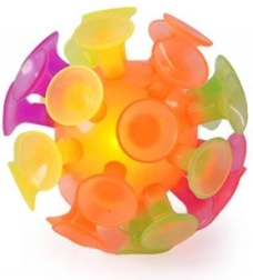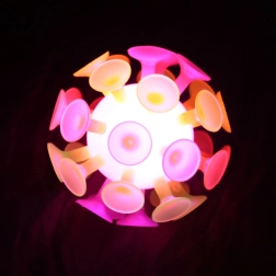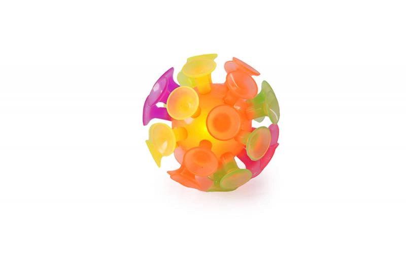 Забавна топка за деца и възрастни с вендузи, които се закрепват върху гладки повърхности. При удар се включва автоматично осветление, което осигурява атрактивни светлинни ефекти и още повече забавление при игра у дома и навън.