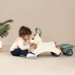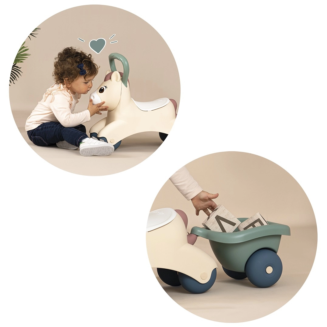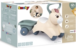 Проходилката Smoby Little Pony с ремарке е идеална за малки деца, които тепърва се учат да ходят и развиват равновесие. Благодарение на удобната седалка и сваляемото ремарке децата могат да превозват любимите си играчки и дребни вещи.
